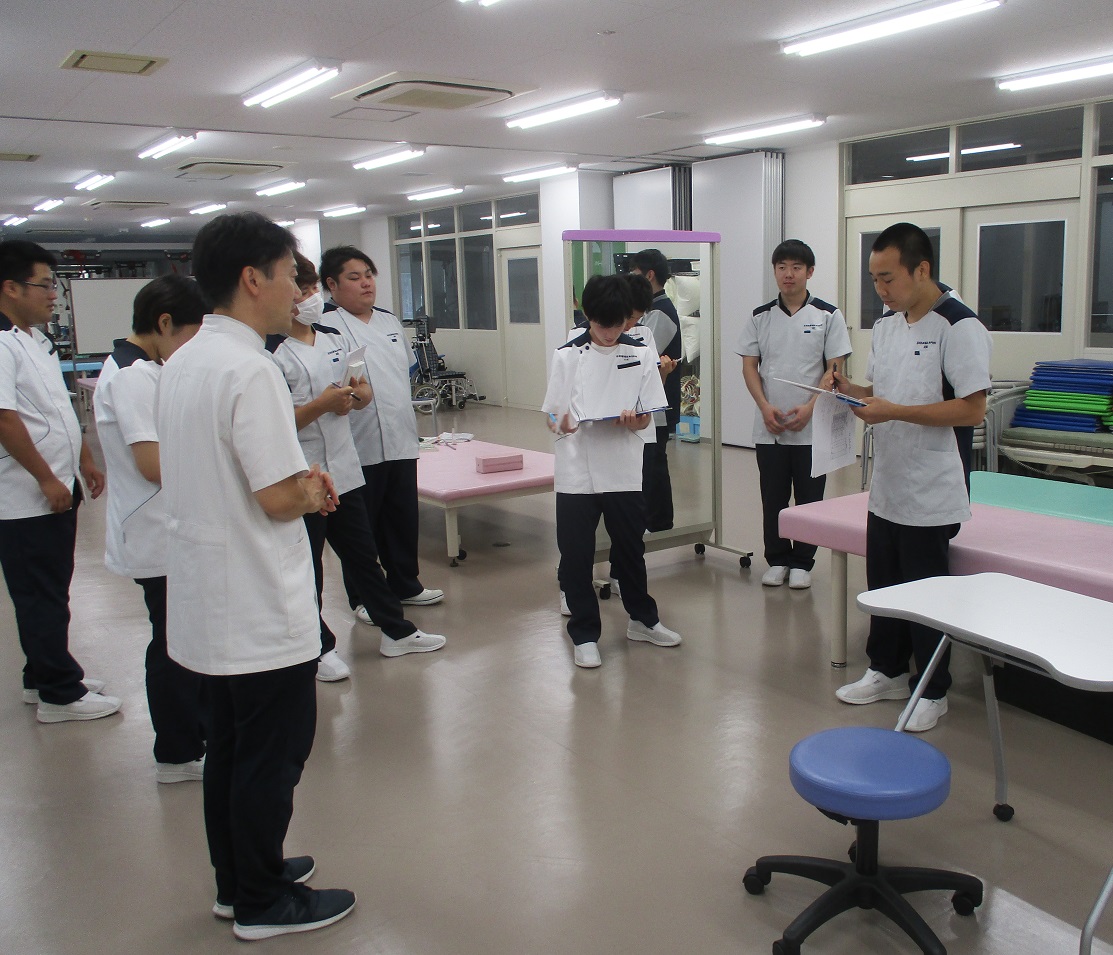 2019/08/26 キャンパスブログ 【理学療法科】実習前の実技試験! 理学療法科3年生は、9月に病院でのプレ実習、10月に臨床実習が始まります。 実習前の準備として、実習で行う評価方法についての実技試験を行いました。 自信をもって実習に望むにはまだまだ研鑽が必要な状態ですが、下の写真のように試験のフィードバックとチェックを繰り返していくことで技術を磨き、実習をより良いものにしてほしいと思います。