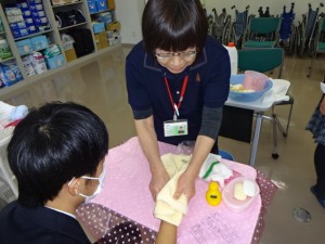 介護福祉科の体験授業では、「簡単!手浴体験」を実施。